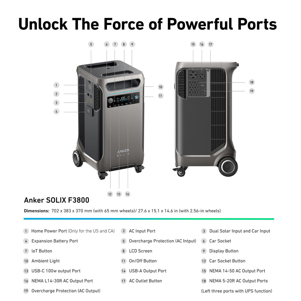 Anker SOLIX F3800 3840Wh | 6000W Portable Power Station w/ Double Power Hub