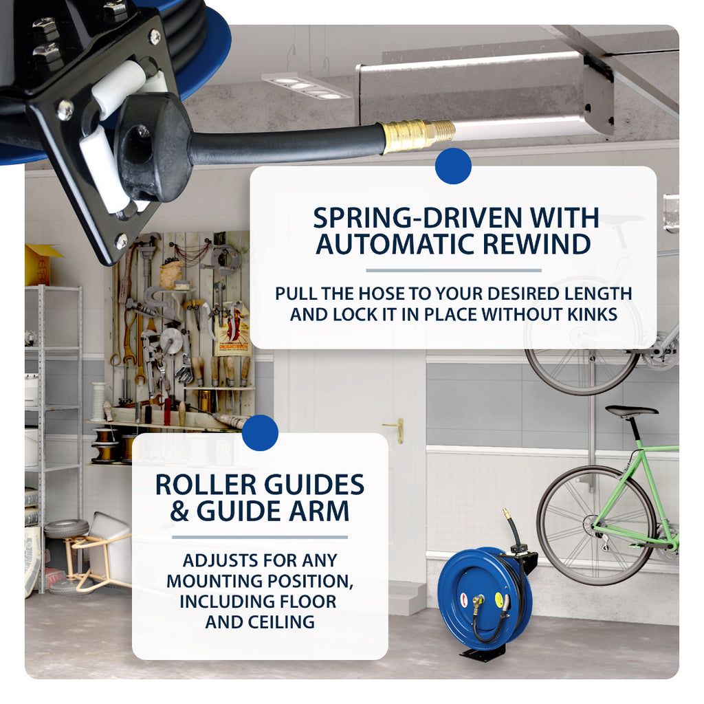 Cyclone Pneumatic CP3688 3/8” x 50’ Retractable Air Hose Reel w/ Rubber Hose