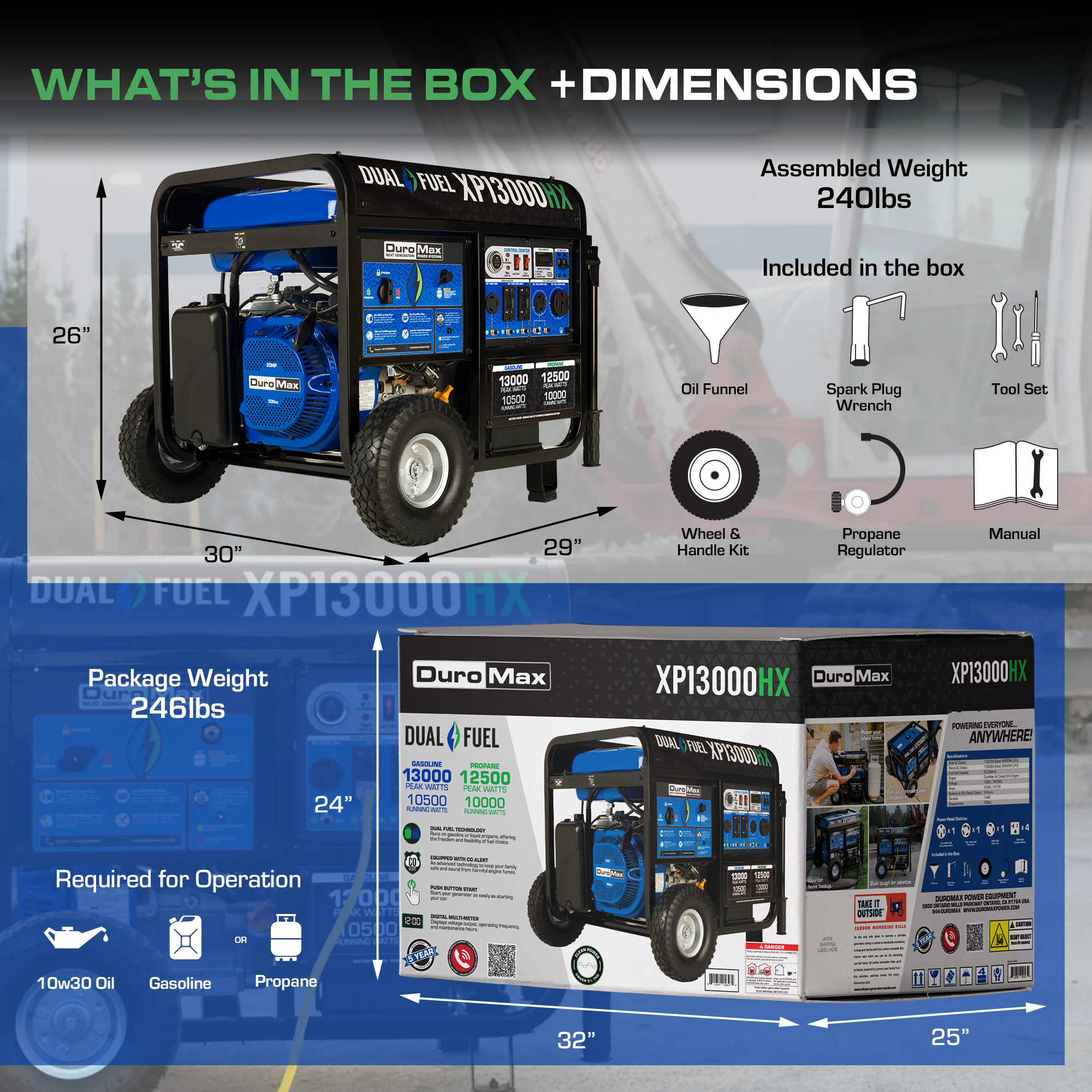 DuroMax XP13000HX 13,000 Watt Portable Dual Fuel Gas Propane CO Alert Generator