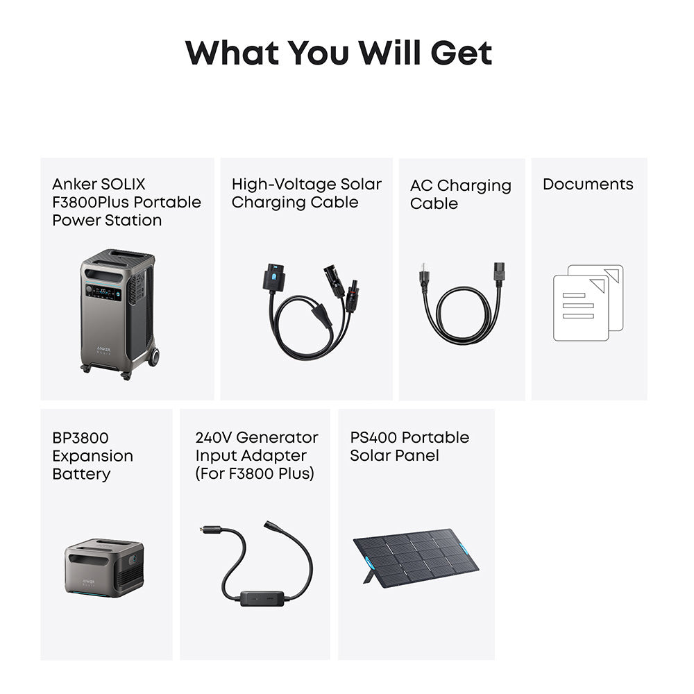 - Anker SOLIX F3800 Plus Portable Power Station (Battery Generator 3840Wh)