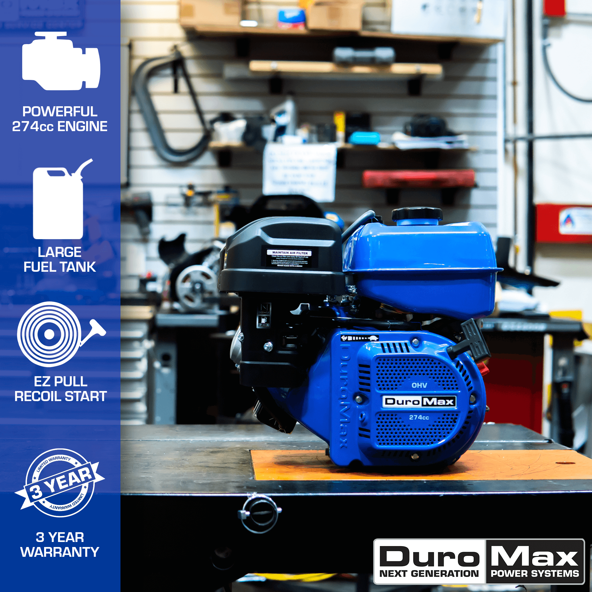 - 274 cc 4-Stroke OHV engine