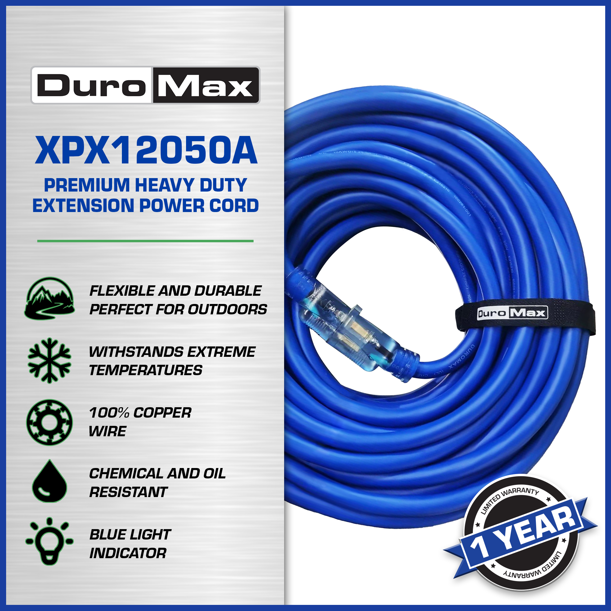DuroMax XPX12050A Heavy Duty SJEOOW 50-Foot 12 Gauge Blue Single Tap Extension Power Cord