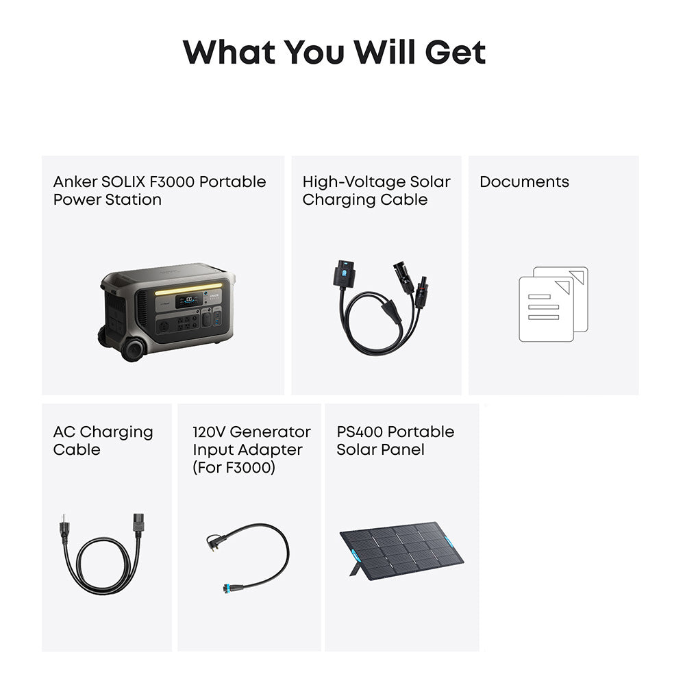 - Anker SOLIX F3000 Portable Power Station (Battery Generator 3072Wh)