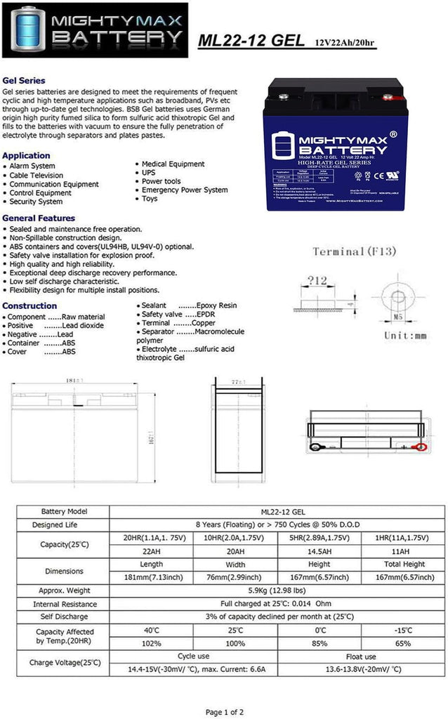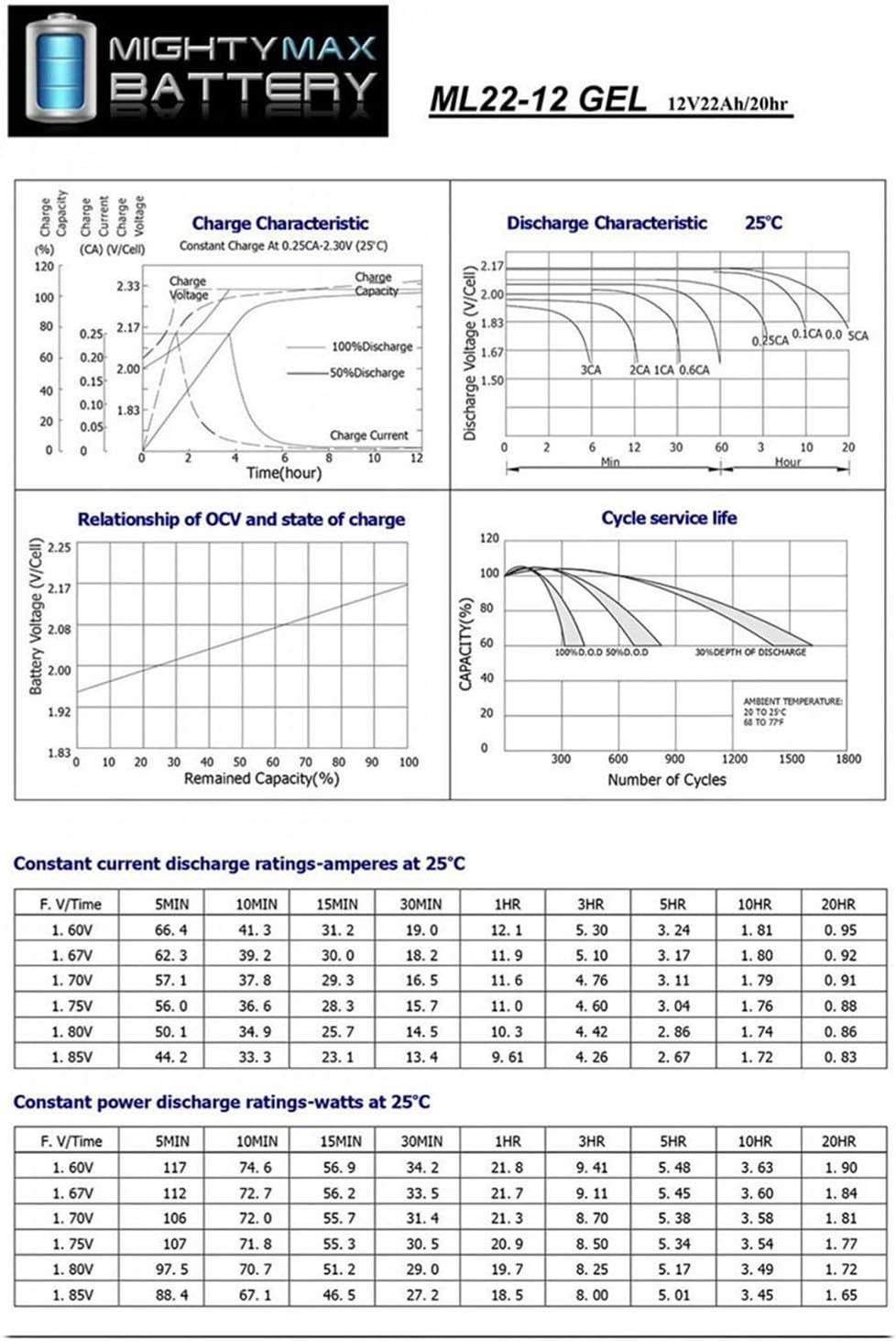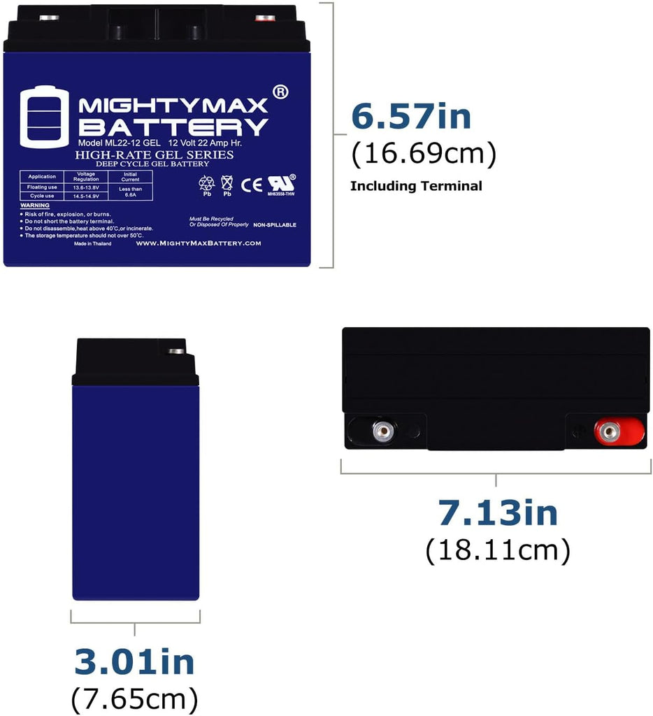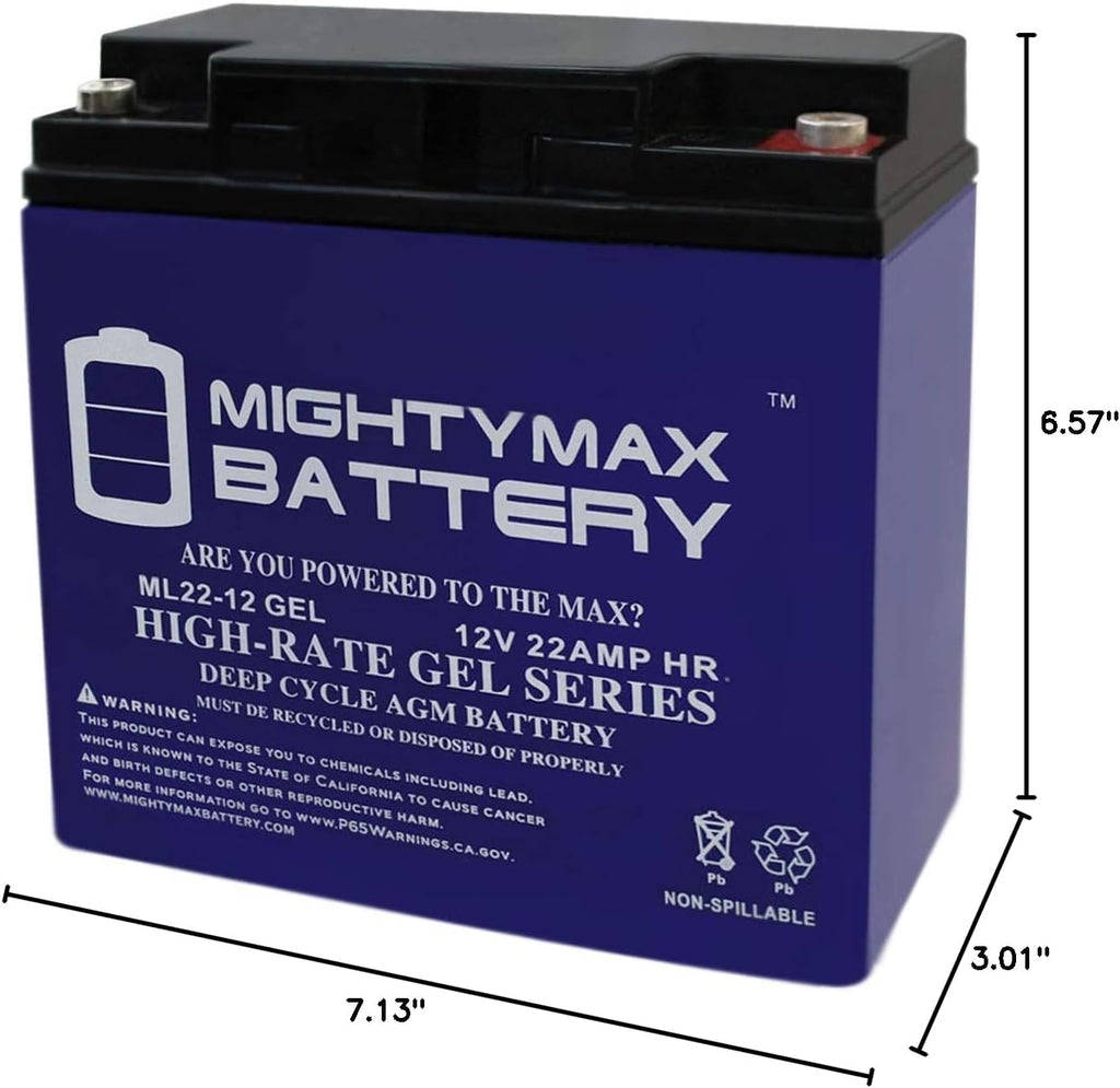Mighty Max ML22-12GEL 12V 22 AH GEL Rechargeable Maintenance Free SLA AGM Battery