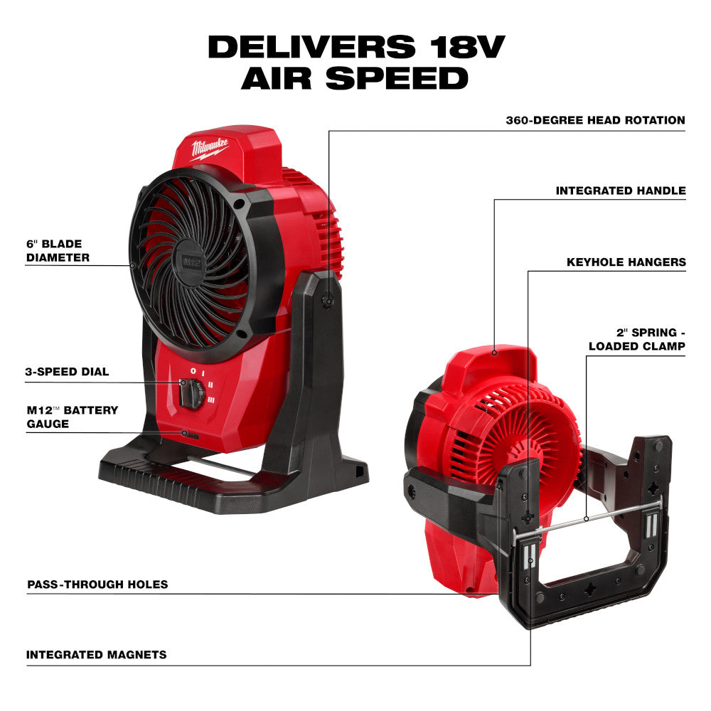 Milwaukee 0820-20 M12 12V Cordless Li-Ion Mounting Fan - Bare Tool