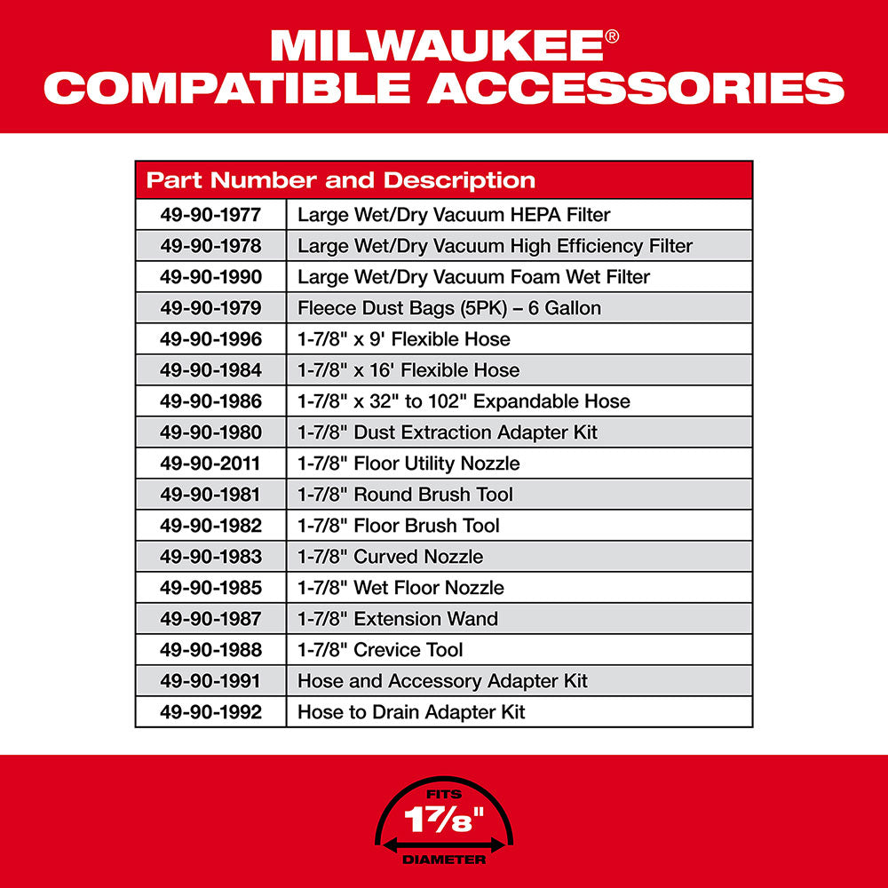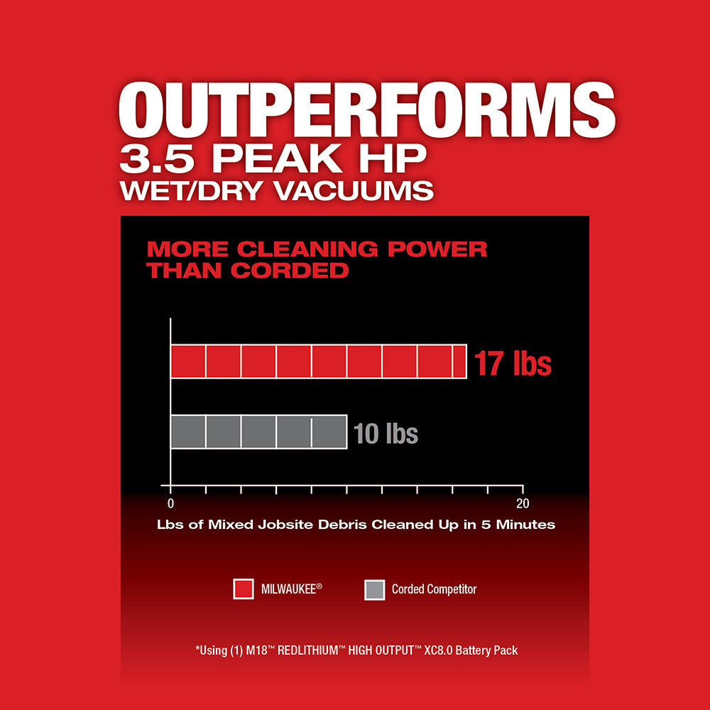 Milwaukee 0910-20HEPA M18 FUEL 6 Gal Wet/Dry Vacuum w/ HEPA Filter/Dust Bags Kit