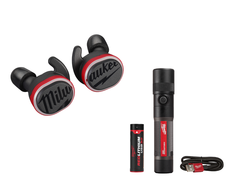 Milwaukee 2191-21FL USB Cordless Jobsite Ear Buds w/ 1100L Flashlight