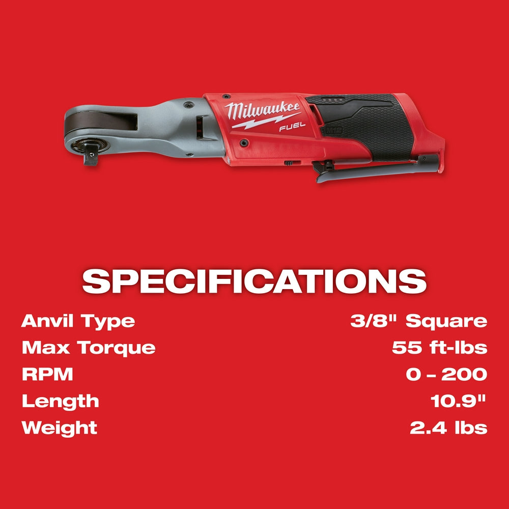 Milwaukee 2557-22 M12 FUEL 12V 3/8-Inch 55-Ft-Lbs. Li-Ion Cordless Ratchet Kit