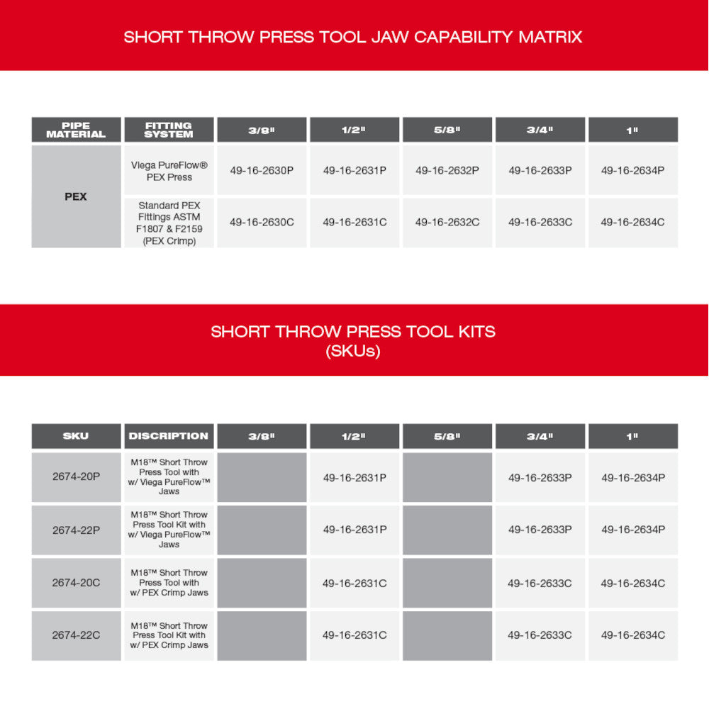 Milwaukee 2674-82C M18 18V Short Throw Press Tool Kit w/ PEX Crimp Jaws - Recon