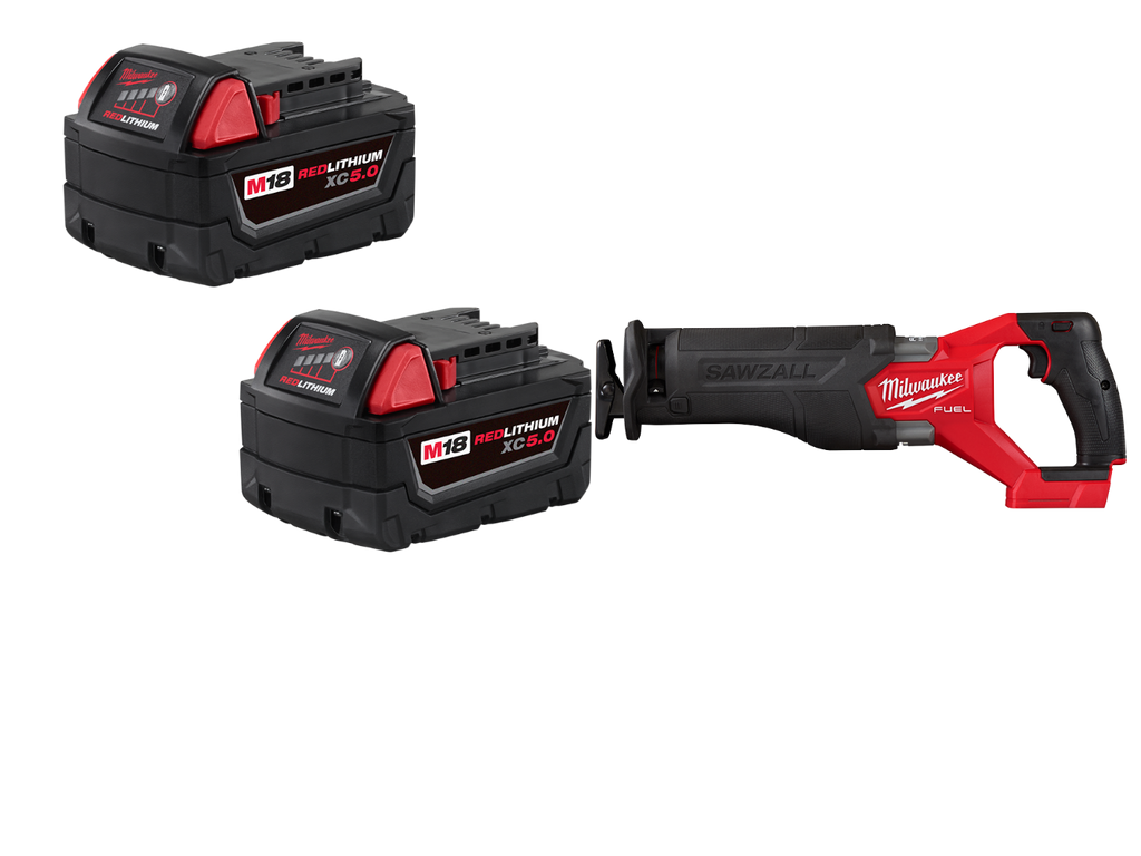 Milwaukee 2821-20B5 M18 FUEL 18V SAWZALL Reciprocating Saw w/ 2 - 5AH Batteries