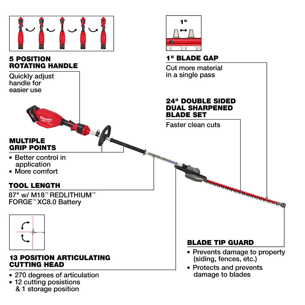 Milwaukee 3012-21 M18 FUEL 18V Pole Articulating Hedge Trimmer Kit