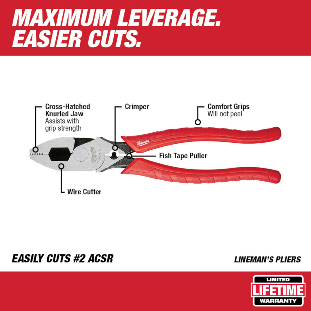 Milwaukee 48-22-6100 9-Inch Iron Carbide Edge High Leverage Lineman's Pliers