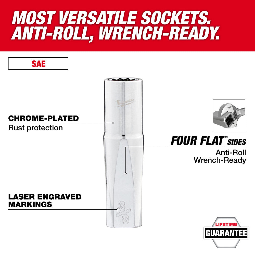 Milwaukee 48-22-9421 3/8" Drive 12-Point Deep Well SAE Socket Set - 12 PC