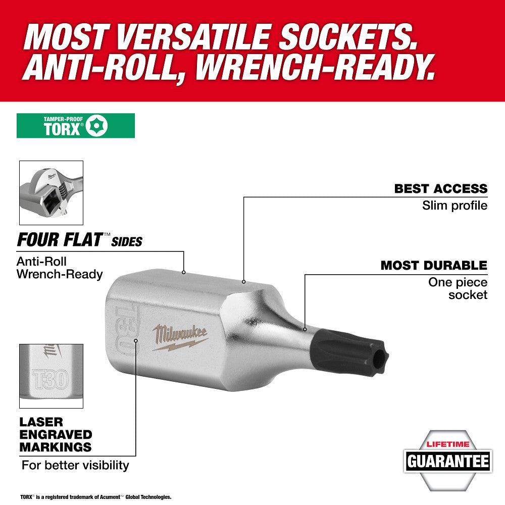 Milwaukee 48-22-9535 1/4" - 3/8" Drive Tamper Proof TORX Bit Socket Set - 13 PC