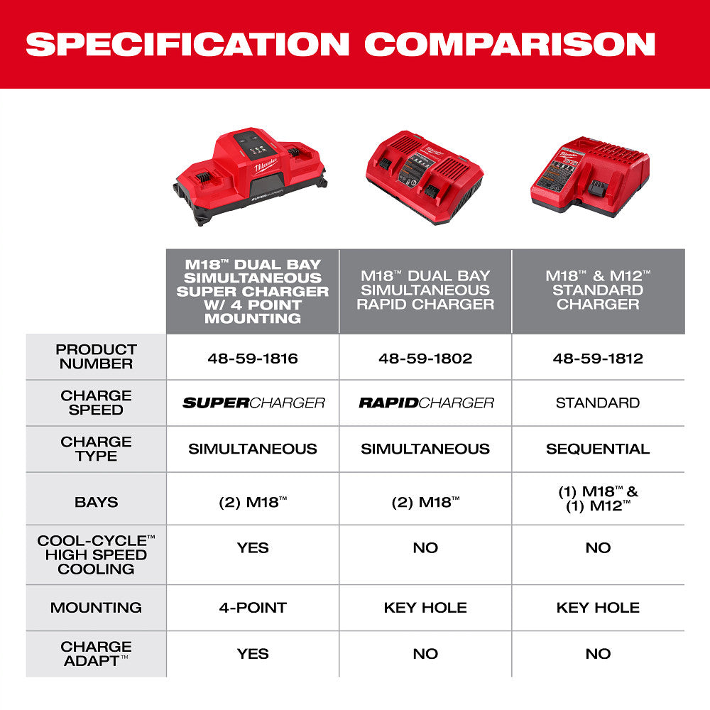 Milwaukee 48-59-1816 M18 18V Dual Bay Super Charger w/ 4 Point Mounting