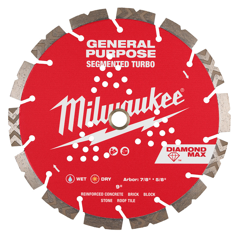 Milwaukee 49-93-9009 9" DIAMOND MAX Segmented Turbo General Purpose Diamond Blade