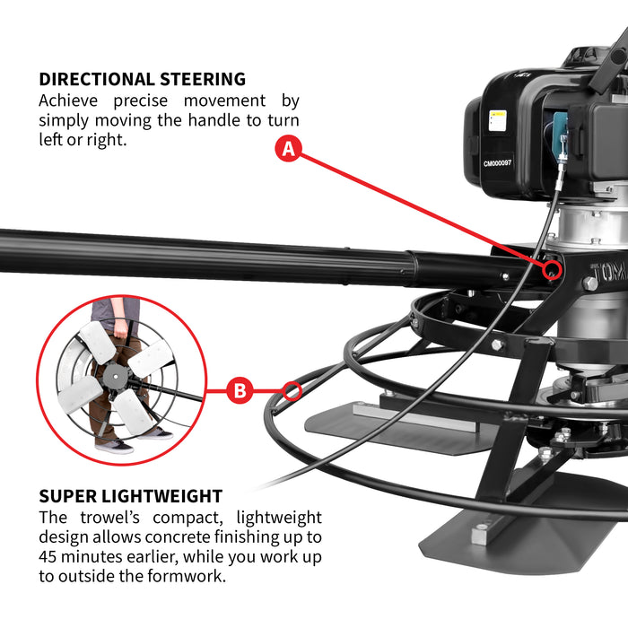 Tomahawk Power JXPT30T 30" Porta Trowel w/ 37cc Engine, 18ft Bull Float Handle